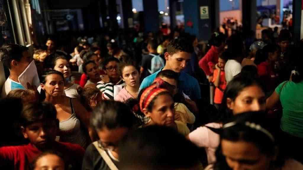 Imigrantes venezuelanos na fronteira do Equador com o Peru