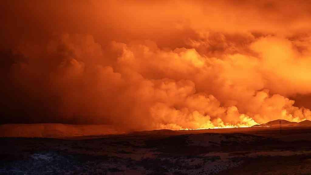 Lava parece fluir para longe de Grindavik, cujos moradores foram previamente retirados em novembro, após vários terremotos indicarem erupção iminente.