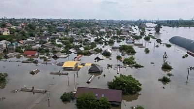 A Ucrânia acusa a Rússia de ter explodido a barragem de propósito para impedir que suas tropas atravessem o rio. As cidades foram tomadas pela água.