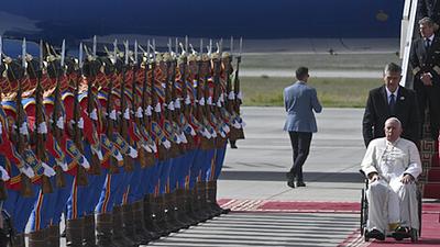 Jorge Bergoglio desembarcou na capital Ulan Bator nesta sexta-feira, dando início à primeira passagem de um pontífice por uma das nações com menor percentual de católicos no mundo.