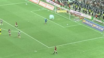 Torcedores atleticanos, que eram a maioria no estádio, arremessaram uma série de objetos, além dos explosivos, depois que o time carioca fez o gol na partida de domingo.