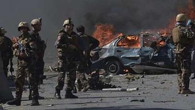 Os talebãs assumiram a responsabilidade do atentado e informaram que, depois da primeira explosão com um carro-bomba na área de Green Village.