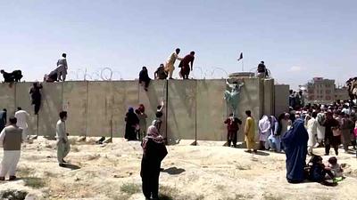 No dia seguinte ao colapso do governo afegão, milhares de civis tentaram embarcar em aviões para escapar do grupo islâmico. Tropas norte-americanas disparam tiros para o alto, e testemunhas relatam ao menos cinco mortes.