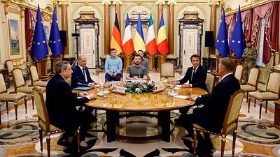 Líderes do Ocidente visitam Kiev nos três anos de guerra