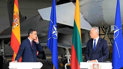 Coletiva de imprensa do premiê da Espanha, Pedro Sánchez, e do presidente da Lituânia, Gitanas Nauseda, realizada na base aérea lituana da OTAN em Siauliai, foi interrompida devido a uma missão urgente de duas aeronaves da OTAN para interceptar um avião russo.