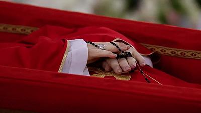 De acordo com a Santa Sé, o caixão foi colocado em frente ao Altar da Confissão, na Basílica de São Pedro, onde o coro cantou a Ladainha dos Santos em latim “para o repouso de sua alma”.