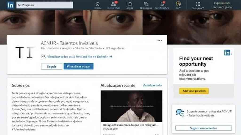 A campanha Talentos Invisíveis, da Agência das Nações Unidas para Refugiados (Acnur) e do Programa de Apoio para a Recolocação do Refugiado (Parr), busca dar visibilidade a essas trajetórias para que eles sejam reconhecidos por suas potencialidades e valores ao disputar uma vaga.