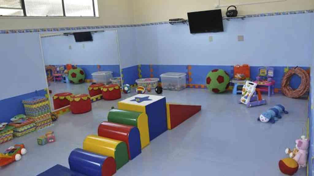 A creche Tuta Massot Kress, localizada no Complexo Penitenciário de Gericinó, em Bangu, é destinada aos filhos dos servidores