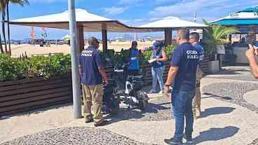 Os agentes também realizaram fiscalizações nos barraqueiros da orla. Foram aplicadas 48 autuações por loteamento de areia, falta de tabela de preços, entre outras infrações em Copacabana e no Leme. Também foram apreendidas 35 churrasqueiras na orla.