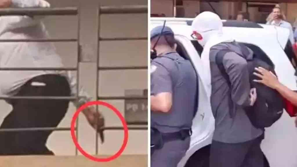 “Enquanto um aluno avisava em sala sobre a paralisação no dia de hoje, o professor partiu para cima dele com uma faca e ele teve que se defender sozinho contra o ataque. Depois, o professor ainda partiu para cima de outro aluno com spray de pimenta”, afirma o comunicado divulgado pelo DCE nas redes sociais. Em vídeos, também divulgados em redes sociais pelos estudantes, é possível ver o professor sendo levado, com o rosto coberto por uma camiseta, em uma viatura da Polícia Militar.