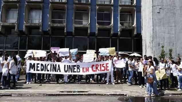 Cerca de 150 estudantes de medicina da Universidade do Estado da Bahia (Uneb) realizaram um protesto, nesta segunda-feira, por melhorias na infraestrutura do curso e pela contratação de novos professores. Com faixas e cartazes, os manifestantes se reuniram em frente à Secretaria de Administração do Estado da Bahia, em Salvador.
