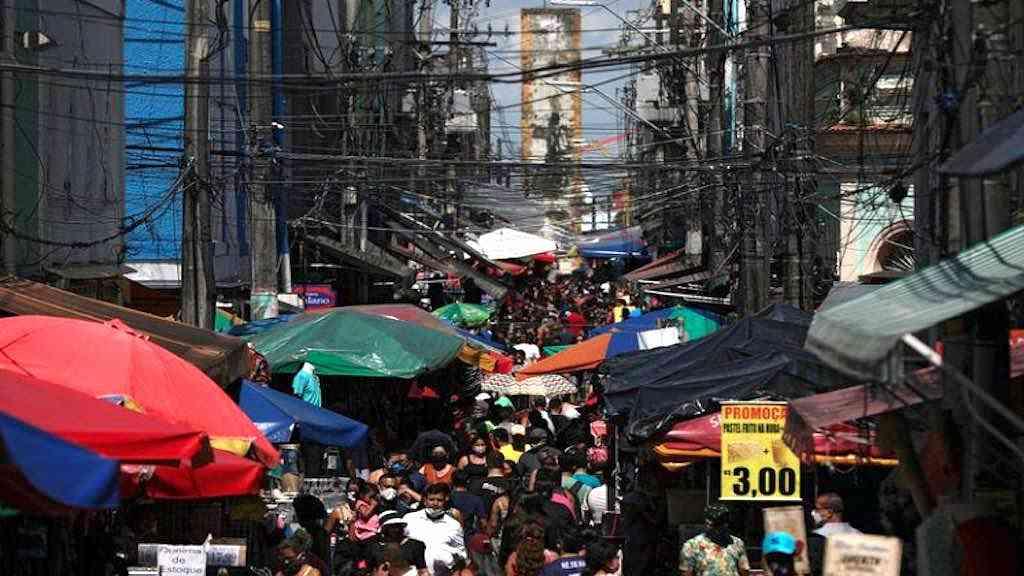 Pessoas em rua de comércio popular em Manaus, capital do Amazona