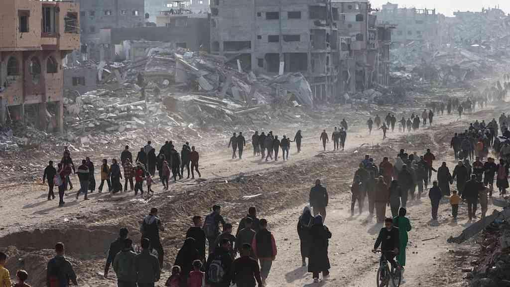 Repórteres da agência francesa de notícias AFP viram palestinos em caminhões, carroças de burro e a pé a caminho de casa pelo território palestino devastado, especialmente nas áreas ao norte.