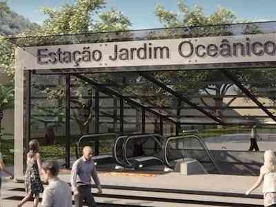 A Estação Jardim Oceânico, na Barra da Tijuca, começa a receber o seu céu estrelado: uma solução arquitetônica que valoriza a iluminação e ventilação naturais. Trata-se de um arco de 68 metros de comprimento e 10,7 metros de largura no vão central da superfície da estação.
