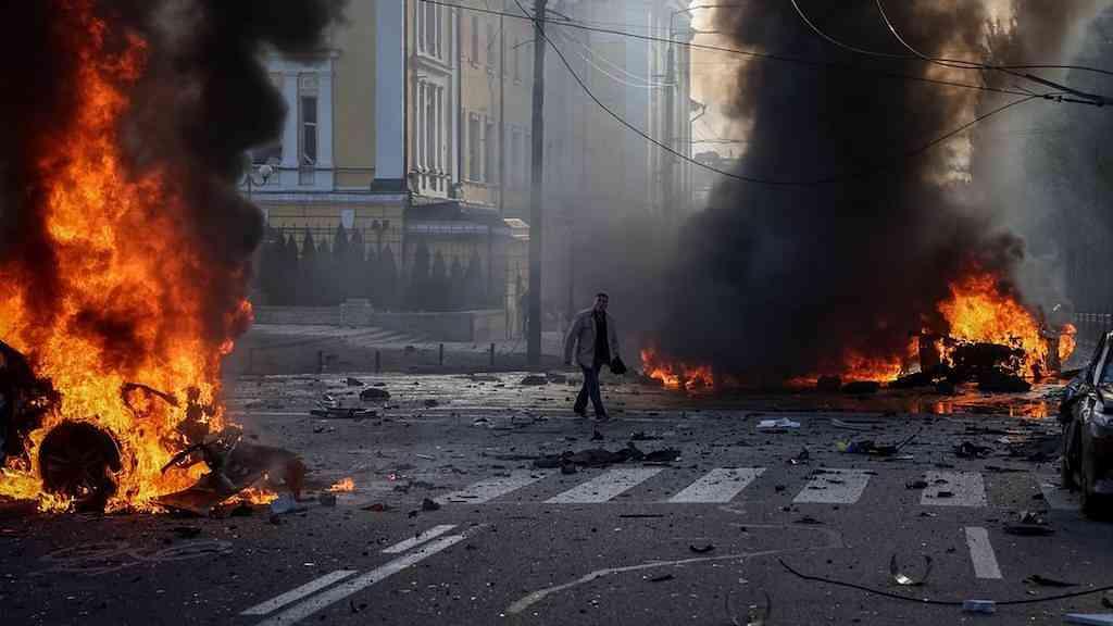 O prefeito de Kiev, Vital Klitchko, afirmou que várias explosões atingiram o centro da capital ucraniana e que "infraestrutura crítica" foi danificada. O jornal diário Kyiy Independent noticiou que ao menos quatro explosões foram ouvidas no centro da capital no início da manhã desta segunda-feira.