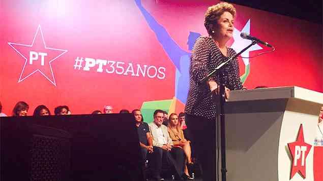 Dilma Rousseff, para explicar sua ausência, enviou uma carta, lida durante a festa do PT, na qual sai em defesa do partido e de seu antecessor, Luiz Inácio Lula da Silva. Ela afirmou que os ataques a seu governo não a "farão recuar" do rumo em que segue o governo.