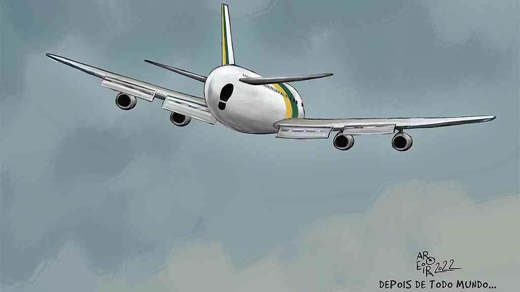 O cartunista Aroeira registrou o momento da evasão de Bolsonaro para fora do Brasil