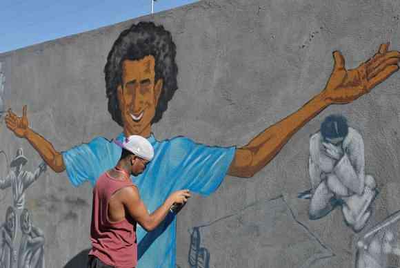 Jovens grafiteiros do DF criam um painel com o tema Juventude Negra e a Paz