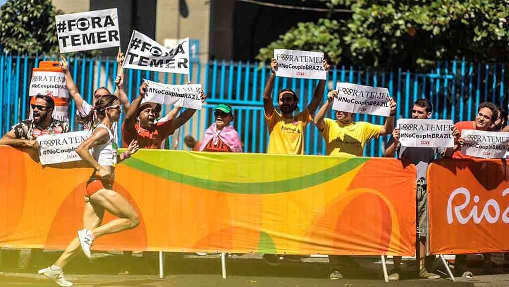 Brasileiros protestam contra Michel Temer em maratona olímpica