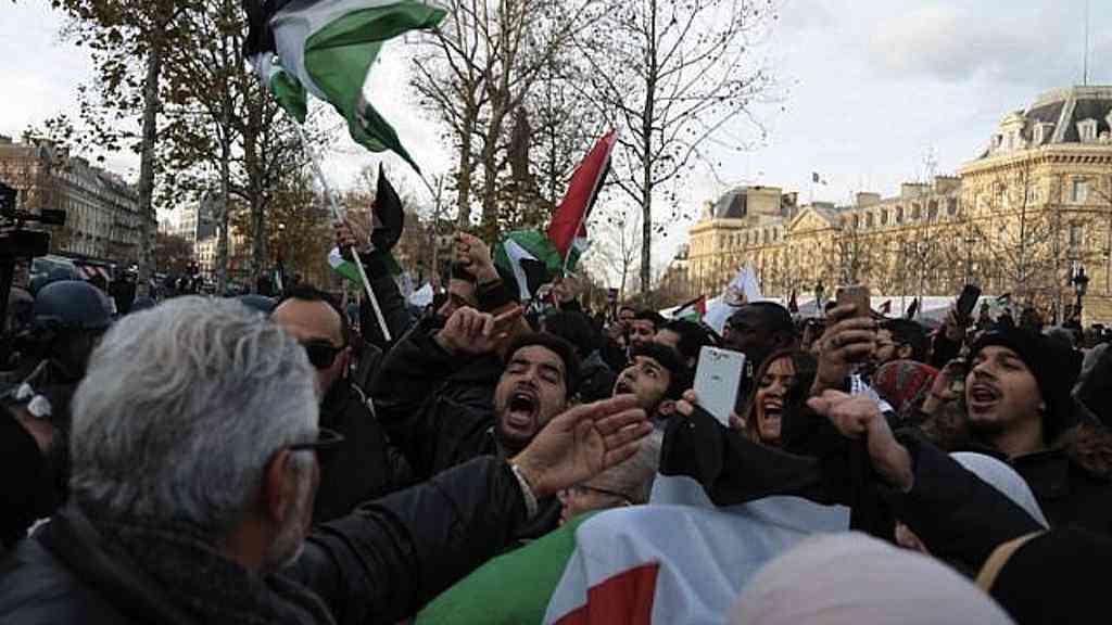 Na Cisjordânia e ao longo da fronteira entre Gaza e Israel, centenas de palestinos; alguns jogando pedras e colocando fogo em pneus, confrontaram soldados israelenses e; em Gaza, cerca de 1,5 mil pessoas participaram de um protesto contra a decisão de Trump.