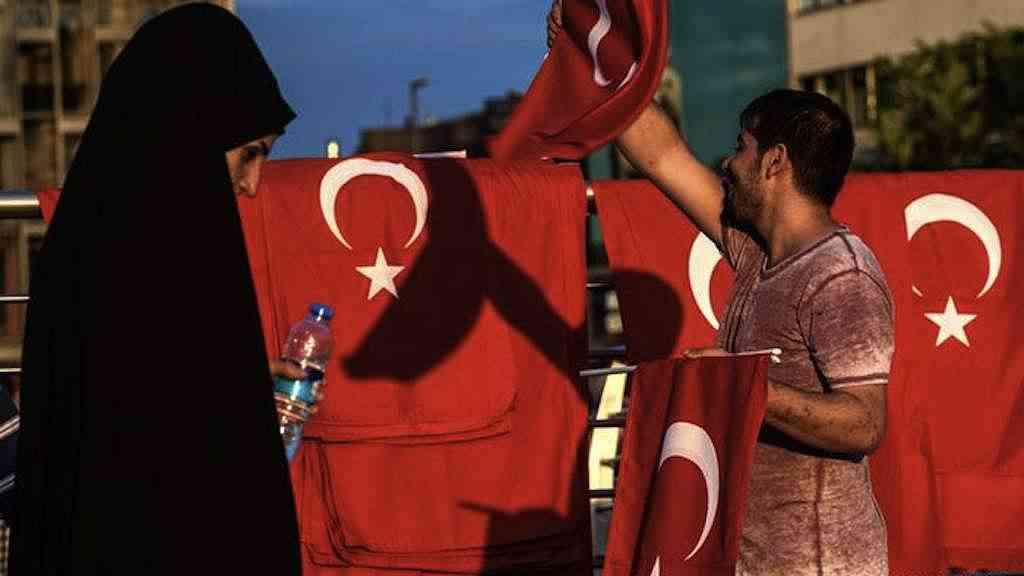 Após o contragolpe, homem vende bandeiras da Turquia em Istambul: declaração do estado de emergência gerou desconforto entre muitos