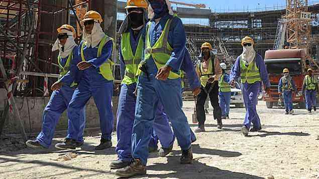 Os projetos de construção referentes ao Mundial de 2022, com custos estimados em US$ 200 bilhões, têm atraído construtoras estrangeiras que, de acordo com o relatório, pagam salários próximos de US$ 1,5 por hora, baseando-se no sistema kafala. Esses sistema, que as autoridades do Catar já manifestaram a intenção de alterar, permite aos empregadores confiscar os passaportes dos trabalhadores, impedindo que os imigrantes mudem de emprego ou saiam do país.