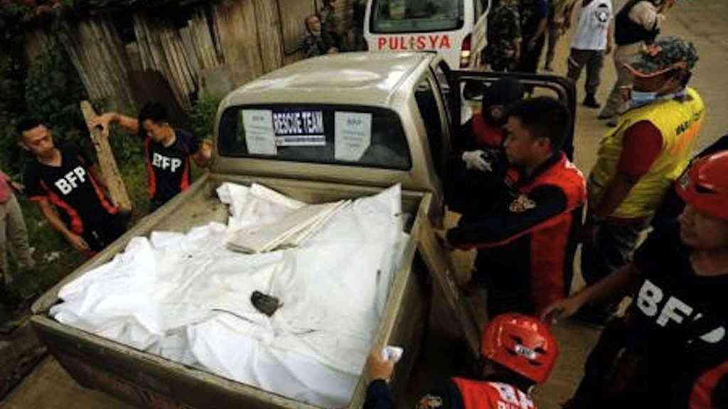Garcia não respondeu de imediato a pedidos insistentes por mais detalhes, e não ficou claro quando os corpos foram encontrados. Um agente de resgate civil, Abdul Azis Lomondot. Disse à agência inglesa de notícias Reuters mais cedo que partes de corpos foram encontradas na quarta-feira, mas que "não há provas de decapitação".