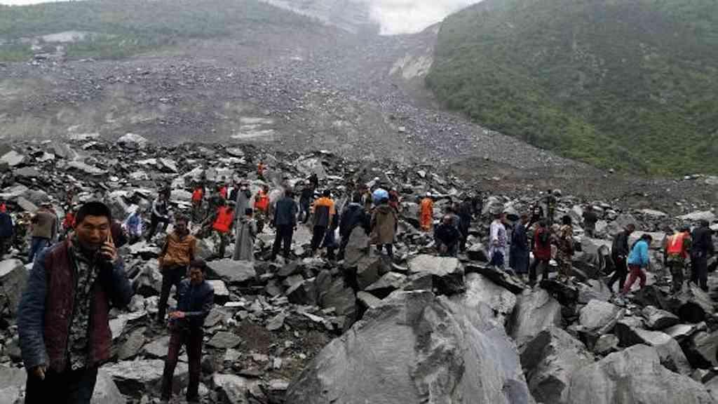 Imagens divulgadas pela emissora de televisão oficial CCTV mostram diversos soldados levantando pesadas pedras e várias retroescavadeiras trabalhando na região onde estavam as pessoas que ficaram soterradas.
