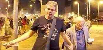 Já distantes do centro da aglomeração, que, repito se dispersava, ordeira e pacificamente, ao fim de uma marcha democrática, estávamos — além de mim, os médicos Aitan e Helenita Sipahi, septuagenários como eu —, o deputado Paulo Teixeira e o senador Lindbergh Farias, que dava uma entrevista.