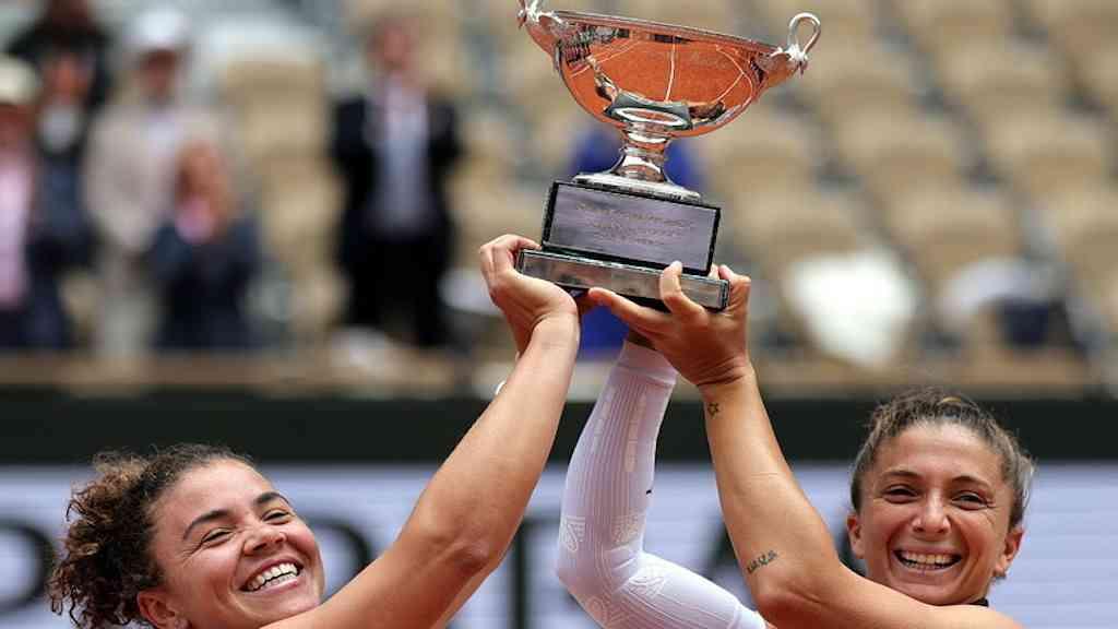 As tenistas italianas Sara Errani e Jasmine Paolini ergueram a taça neste domingo como as grandes campeãs de duplas do Roland Garros em Paris.