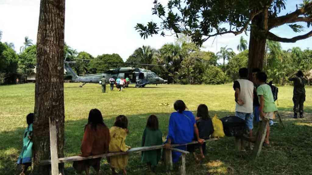 Operação Gota utiliza helicóptero da Força Aérea para levar doses de vacinas do calendário anual a crianças e adultos de áreas indígenas