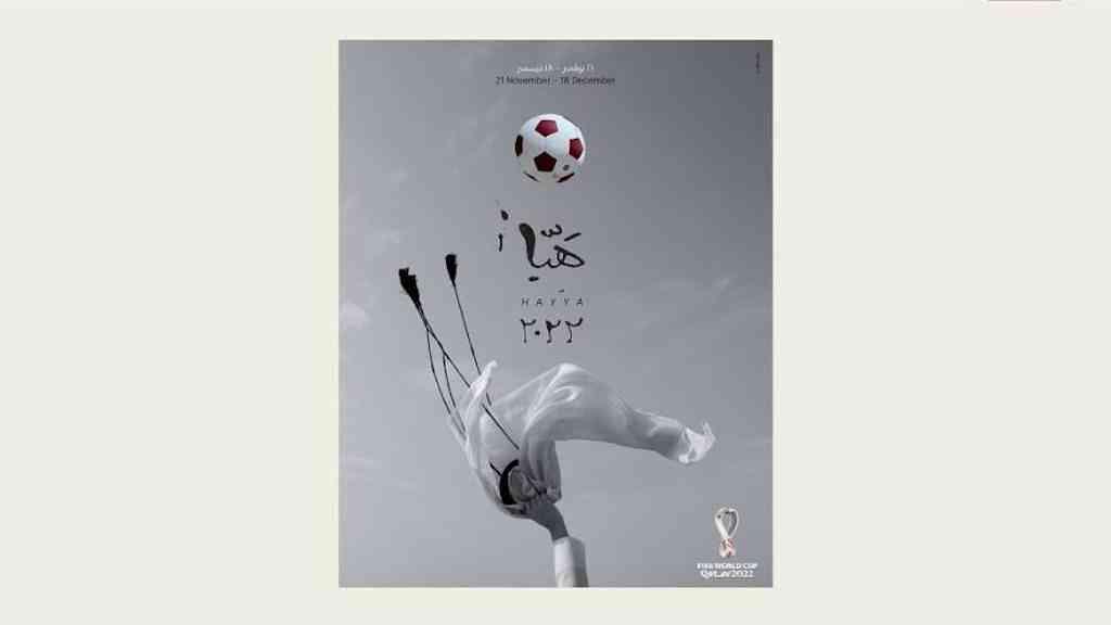 Desenhado pela artista catariana Bouthayna Al Muftah, o pôster mostra a mão de uma pessoa jogando para cima uma gutra e um agal, o lenço e a corda usados por homens no mundo árabe para cobrir a cabeça, como se comemorasse um gol.