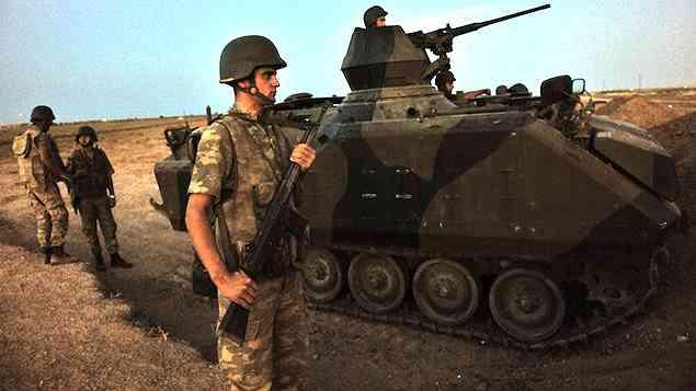 As Forças Armadas da Turquia, que concentram tropas perto da fronteira com a Síria, enviaram à região meios de desativação das minas e foguetes