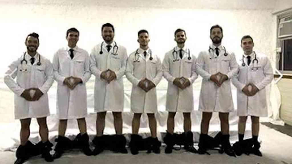 Imagem mostra futuros médicos de calças arriadas e fazendo referência à genitália feminina. Universidade de Vila Velha afirma que abrirá sindicância para apuração do ocorrido e penalizar os alunos