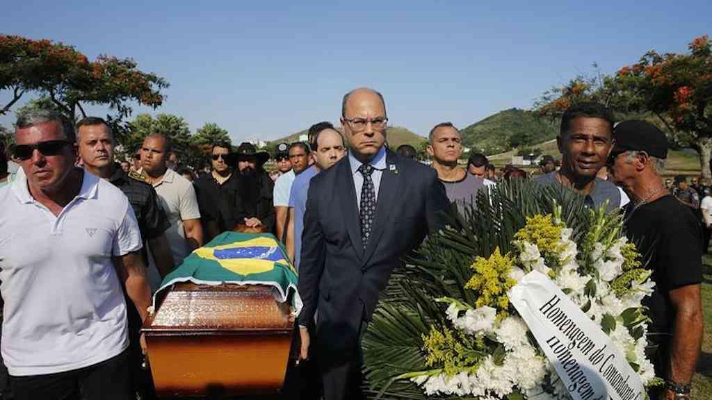 No enterro do PM Mariotti, o governador Wilson Witzel prometeu aniquilar o crime organizado
