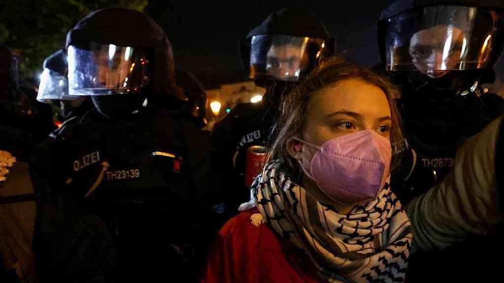 – A polícia disse que me prenderia se eu fosse lá. Tudo isso só porque os estudantes me convidaram para falar em seu evento e porque estive num protesto (pró-palestinos) em Berlim no dia anterior à invasão da polícia – escreveu a ativista em seu perfil na rede social X (ex-Twitter). “A Alemanha está ameaçando e silenciando ativistas que se pronunciam contra o genocídio e a ocupação”, afirmou Thunberg, de 21 anos, em um vídeo publicado com a mensagem.