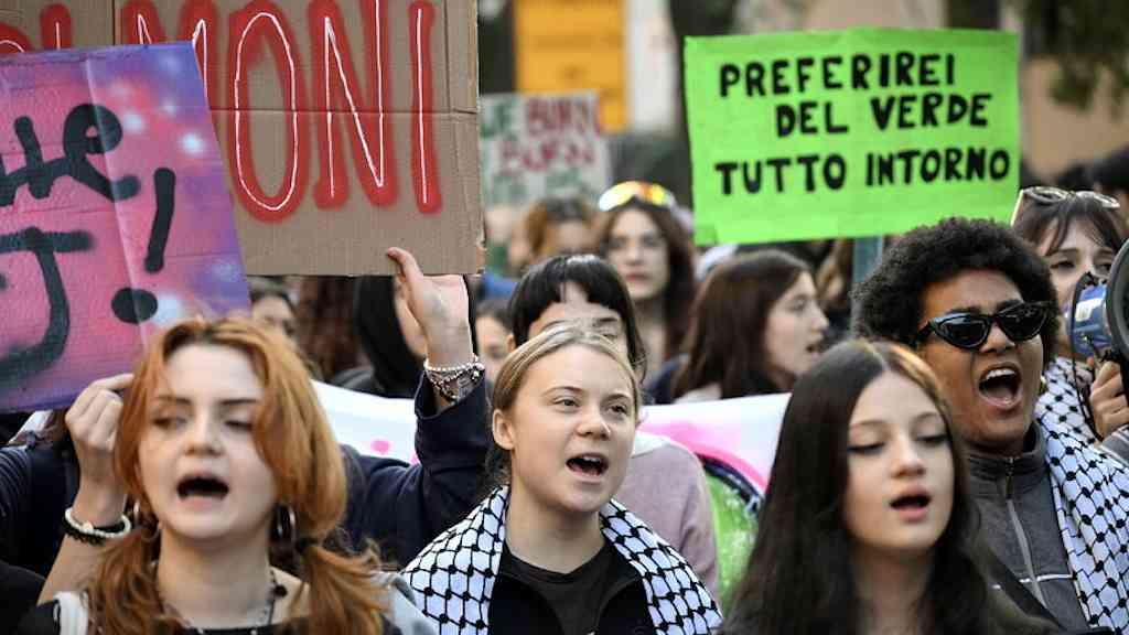 A sueca, que usou um lenço árabe keffiyeh durante a passeata, foi seguida por milhares de estudantes que realizaram diversos tipos de ações, dentre elas, um míssil de papel colocado em frente ao Museu da Ciência e da Tecnologia Leonardo Da Vinci, que de acordo com os manifestantes, “ajudou no financiamento para bombardear” o enclave palestino.