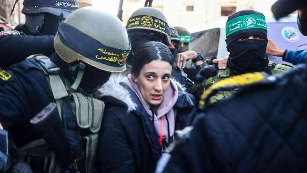 A primeira pessoa a ser solta nesta quinta-feira foi a soldado Agam Berger, 20 anos, última mulher militar em poder do Hamas e entregue à Cruz Vermelha depois de ser exibida em um palco em Jabalia, no norte do enclave, ao lado de milicianos armados do Hamas. Ela ainda foi forçada a posar para fotos com um certificado emoldurado.