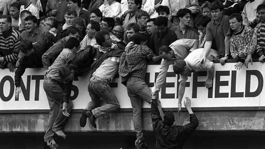 A tragédia de Hillsborough ocorreu poucos minutos após o pontapé inicial. Imagens angustiantes de jovens torcedores esmagados contra as grades de metal, corpos deitados no gramado e espectadores usando placas publicitárias de madeira como macas improvisadas chocaram o Reino Unido.