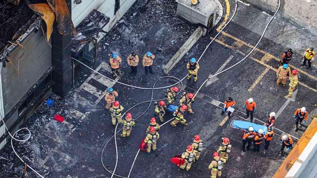 O incêndio e uma série de explosões atingiram a fábrica administrada pelo fabricante de baterias Aricell em Hwaseong, um aglomerado industrial a sudoeste da capital Seul.