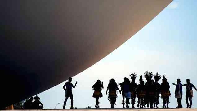 Índios de cerca de 105 etnias ocupam, nesta terça-feira, as cúpulas da Câmara e do Senado, no prédio do Congresso Nacional