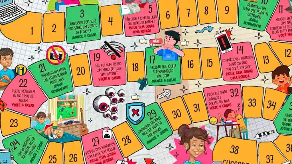Para brincar, é preciso baixar e imprimir o material, que está disponível no site da Internet Segura, e então recortar e montar um dado e alguns personagens disponíveis no jogo. Depois, basta jogar esse dado e ir pulando as casas correspondentes até chegar ao destino final.