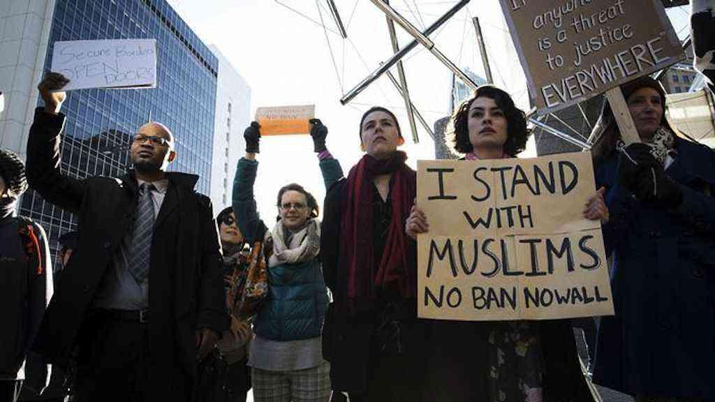 Manifestantes foram às ruas e aos aeroportos em todo o mundo para protestar contra a decisão do republicano, alvo de críticas de líderes internacionais, empresas e ativistas de direitos humanos.