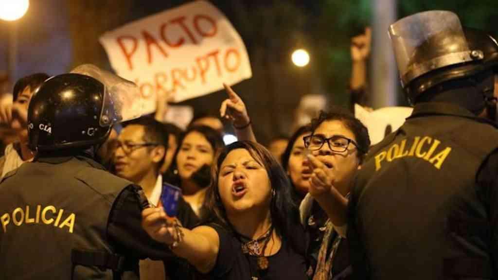 Mais cedo na segunda-feira, a polícia jogou gás lacrimogêneo; para dispersar multidões no Centro de Lima no segundo dia de protestos; enquanto um terceiro parlamentar anunciou que estava deixando o partido de Kuczynski.
