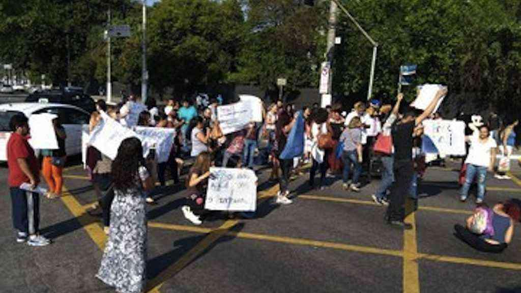 As mães protestavam em frente à escola, mas decidiram bloquear a avenida para chamar a atenção da população e da imprensa. Elas estão fazendo um abaixo-assinado