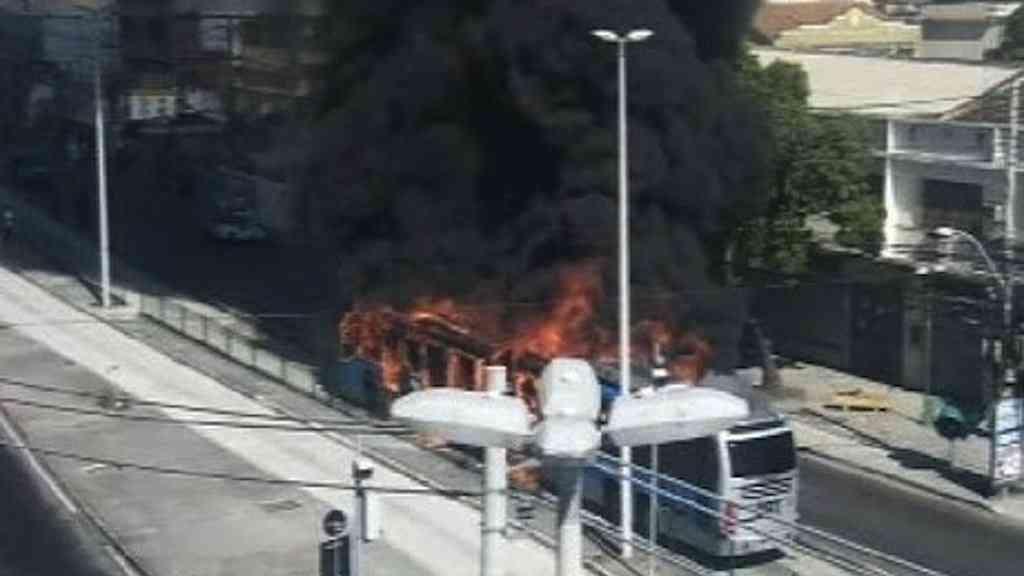 Manifestantes atearam fogo a um ônibus em Bangu, na Zona Oeste do Rio de Janeiro, na manhã desta terça-feira. O protesto ocorreu depois que uma operação policial na comunidade da Vila Aliança, na noite anterior, terminou com um morador morto.