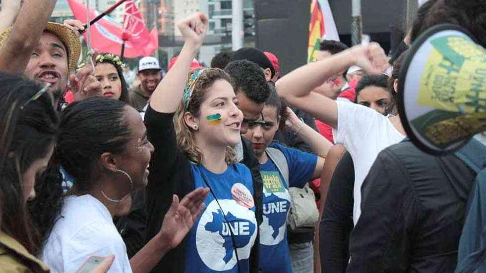 Carina Vitral (C) liderou protesto contra o golpe de Estado, em curso no país