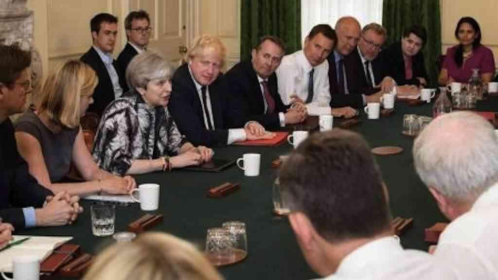 Premiê britânica, Theresa May, durante reunião de gabinete em Londres