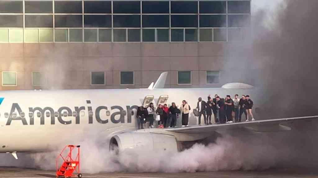 Vários vídeos dramáticos de passageiros em pé na asa do avião enquanto a fumaça saía do motor foram postados nas redes sociais.