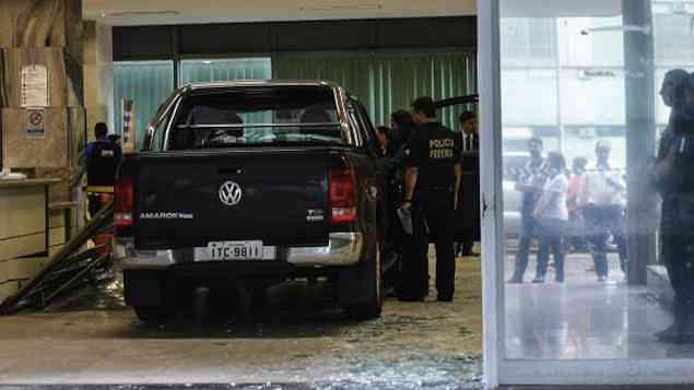 Uma caminhonete com placa de Londrina invadiu a entrada de serviço do Ministério da Fazenda